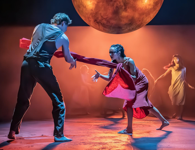 Trevor Fox (as Time) ended up sitting on the stage-left corner for some time, totally obscuring our view. In the background, many of the cast stay on, either wafting about, freezing, or forming tableaux. The amount of people standing stock still freezing rather points to that final statue scene. Did they have freezing workshops?