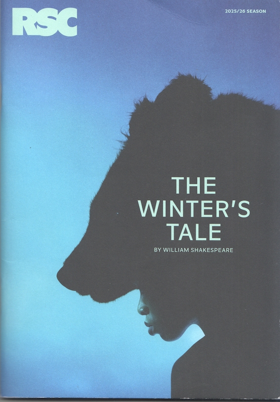 I keep hoping for a real bear for ‘exit pursued by a bear’ having seen projections and bear suits. We’re not going to get it though I am sure Shakespeare used a real bear. This is a new one. In the far background, Hermione stands in shadow, and puts on a bear’s head. There is no production photo, but it is the programme cover: