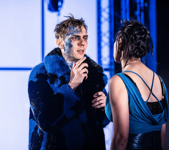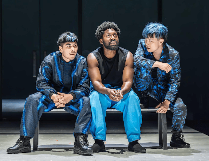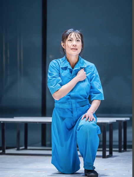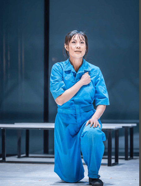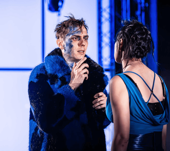 This is the play with Aaron the Evil Moor. It cannot be played colour blind in the other parts. They decided to cast East Asian ethnicity actors as the Goths, Wendy Kweh as Tamara, then for her sons, Jeremy Ang Jones as Demetrius and Matthew Chan-Rees as Chiron. That’s strong visually. They also marked the Goths with blue, meaning blue prisoner overalls rather than the cliché Guantanamo orange. So as Saturnius gets drawn deeper in by Tamara he adopts a blue cloak, then blue face paint.
