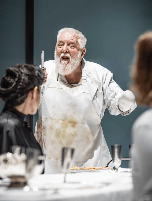 It’s an acting masterclass from Simon Russell Beale, but I had expected that. Both Joshua James and Natey Jones give superb performances as Saturnius and Aaron. Bringing Lavinia in a plastic sheet is really terrifying. Letty Thomas does one of the hardest parts in the canon brilliantly too. Negatives? Lots of blood but silly little paring knives.