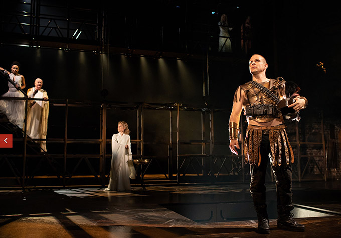 There is still a central paradox about this production. Everything about Niki Turner’s design, with its vast container trucks, and warriors swathed in futuristic goggles and jangling ironmongery, implies that we are in some chaotic, postapocalyptic world. Shakespeare’s play is clearly about the disintegration of moral certainties and established values but it also takes place against a Homeric background. Debunking mythic heroes loses much of its pungency if you are already on the road to dystopia.