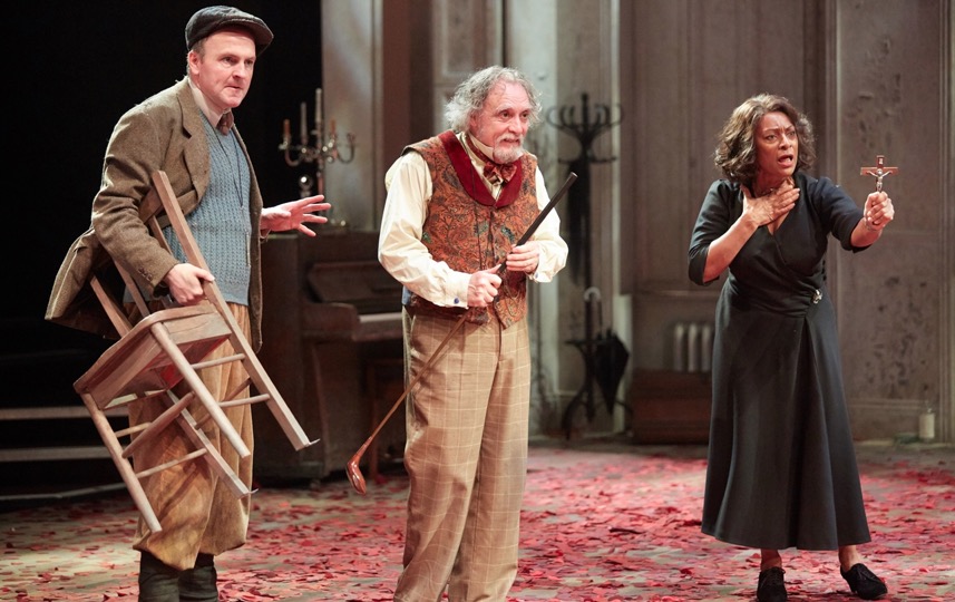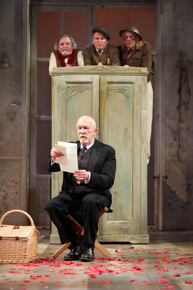 The whole is bookended by a song from Feste, generally the most difficult character, but here an Irish folk singer and central to the concept. Feste’s opening song draws the cast in through windows and wardrobes onto the stage, and at the end they melt back through the windows and the wardrobe (think Lion, Witch and …) leaving him alone. Brian Protheroe sings well, plays well and brings more sense to the existence of Feste, Olivia’s Fool, than normal. The composition sounds like a Waterboys song you’ve missed, but with Shakespeare’s words. The music is excellent throughout.