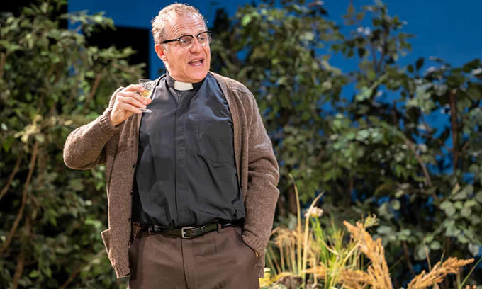 There are so many positives … the garden set is stunning. Chichester has always specialized in first rate fake grass and gardens. Excellent lighting and sky projection throughout. The actors are all first rate. Jenna Russell has to sustain the role full on without even a second’s break. Matthew Cottle is the accident prone bumbling local GP, Bill, in corduroy, who is also unhappily married (it seems) and has held a quiet torch for Susan for years. Perhaps the funniest scene in the play is when Bill tries to humour Susan by pretending he can see Lucy, who he imagines to be a small child, and tries to entertain her while mayhem breaks out around him.