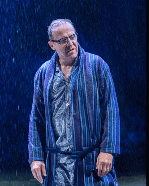 Ayckbourn was fond of rain machines. The main rule about using a rain machine is that the female actor should be in a gratuitous, flimsy white slip which turns semi-transparent, just as here in 2022. Wouldn’t a plastic mac do the same job? Absolutely not. Wet T-shirt contests rule. I think rain machines are crap and cruelty to actors.