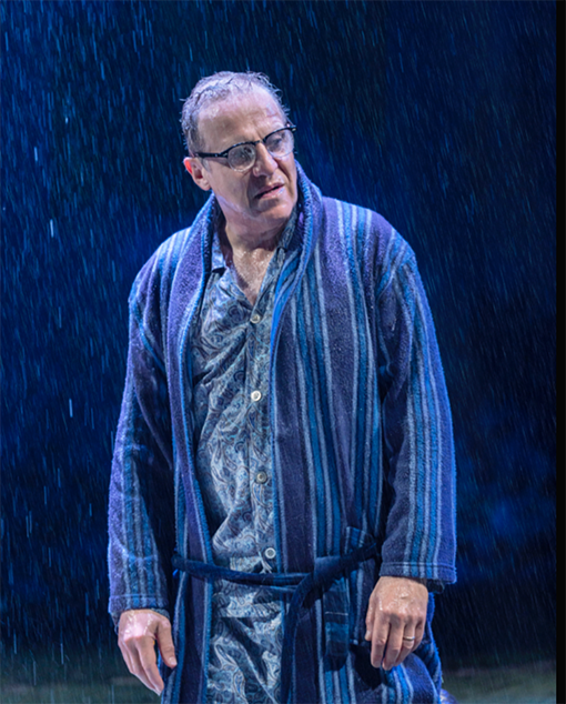 In 2022, you have to credit the video designer on any production, and the cloudscapes projected at the rear were ever changing from bright day to stormy night. The programme notes how careful Ayckbourn’s stage directions are on weather via lighting and sound. Video projection is a major upward step. In a recent review I said the 2020s are all about video projection in virtually every production. The 1980s and 1990s were all about rain machines. Ayckbourn’s Stephen Joseph Theatre, Scarborough home theatre must have had one right in the middle of the circular stage, just as here in 2022- yes, you get both video projection AND a rain machine.