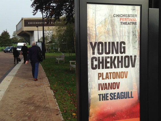 Three in a day? We’ve done the Henry VI trilogy, and we’ve done the ten plays in Tantalus in a day. This is a different experience, because they’re not a trilogy, but free standing plays. Because Platanov was never produced and was not even discovered until 1923, themes and almost lines appear again in Ivanov and The Seagull. He recycles the name Anna Petrovna in two for different characters (both played by Nina Sosanya). So we were not watching a continuous story, so by The Seagull a slight Chekhov fatigue was felt by both of us.